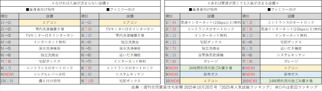 このたび、全国賃貸住宅新聞の2025年10月20日号で「2025年人気設備ランキング」が発表されました。